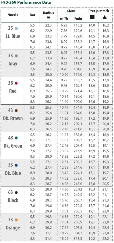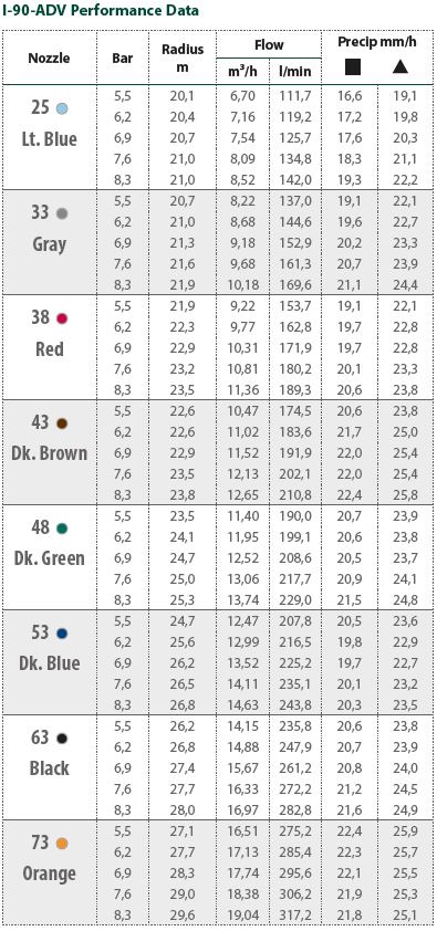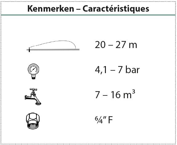 Das I-90 ist das größte turbinengetriebene Sprühgerät auf dem Markt. Sie hat eine Ausblashöhe von 8 cm, einen Anschluss mit 1.1/2" Innengewinde und eine Reichweite von 30,8 Metern. Die Leistung eines Wellensprengers ohne die Größe des Gehäuses und des Flansches. Aufgrund seiner großen Reichweite geeignet für Sportplätze, Golfplätze, Parks, Pferderennbahnen, usw.. Erhältlich mit festen Sprühdüsen. Günstiges Preis-/Leistungsverhältnis. 5 Jahre Garantie.